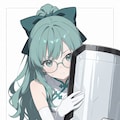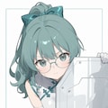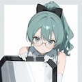 aqua hair, high ponytail, hair bow, (wavy hair:0.8),