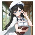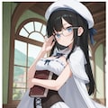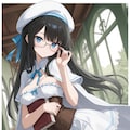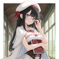 long hair, black hair, straight hair, white beret,