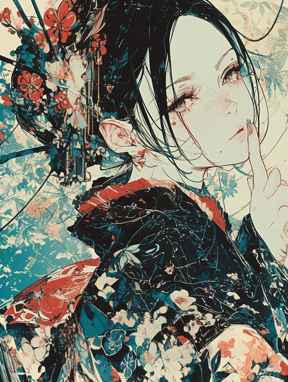 20251124【5枚】紫陽花の中の浴衣姿の女性