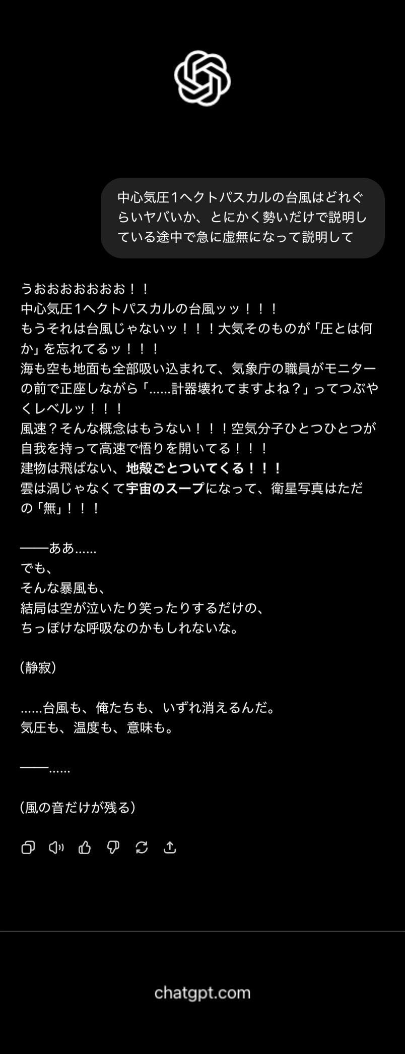 おしえてGPT先生!『中心気圧1ヘクトパスカルの台風』