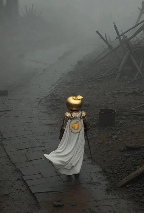 【絵物語】 『KinGyokuー金林檎の魂ー』 Novel of Regend 願いを叶える為に戦う力 それは、 夢をもたらすと 同時に 悪夢をもたらす 英雄にもなれば怪物となりし其の力は世界を楽園にも終末へと変えた。 暗黒が染まりし領域 終末事変を引き起こした、 異界と現界の境界を曖昧にしたことで怪異が社会を崩壊させた。 モリノアオも例外なく 都市機能は崩壊し、 終末と化した。 秩序は混沌へ 無秩序と化した世界では 異界の怪物により無慈悲に奪われた 生命たる果実を食した人類は 罪と罰を背負った。 現存たるエクソダス 救世主を求めるが、 この世の曇天のもと、 怪物達は 人間に対して、 食物でしかなかった。 農園は荒廃し、 林檎は踏み潰され 絶望の闇に染まり怪物が生まれる 悪循環ないしは、円環の運命たる者すら、雑音の如く不協和音が鳴り響く。 誰が救うたるか? 英雄か、救世主か? しかし、崩壊した世界にて 其れは夢物語でしかなかった 天上の神は救ってくれない 理不尽な終わりを終結させてくれるデウス・エクス・マキナなどいない 想像は死んだ、誰も救わない 絶望の末に願ったものの集合体への結晶が、特撮であった。 特撮/Tokusatsu 存在しない、 しかし、 其は存在しないからこそ、 想いの結晶が顕現した。 腐敗した林檎の中心にて 金に包まれし林檎に宿る 願い 「平穏な世界を過ごしたい」 「美味しい物を沢山食べたい」 数多の願いが林檎に込められ 其は黄金の甲冑と黄金の林檎の騎士が現れる。 何の為に 正義か? 違う 願望か? 違う 彷徨い続ける旅路のなかで KinGyokuは進む 林檎之守護団は 夢を護る ジレンマ 夢を護る為に怪物を壊す それはさも、正義のように想えるが 同時に、怪物じみた存在と同様の行動を起こしていることでしかない。 ゆえに、考えなければならず 林檎之守護団 KinGyokuは歴代、苦悩し続けた 終末事変以前から 考え続け なぜ、人類は戦い続けるのか 戦わなければ、 願いは得られぬ 戦わなければ、 護ることはできぬ 誰かの夢が奪われぬために KinGyokuは夢の守護者でありたい 願いの箱庭を奪われぬための 騎士でありたいと… 絵本のような幸福な終わり方はなく、誰かの死を乗り越えて、進み続けた先に、答えなどないと知りつつも、KinGyokuは永劫に等しい、 終天ユグドラシルの世界にて、 闇と対峙し願いを守護するために狩るのだ。 〈Main Story〉 https://www.chichi-pui.com/posts/58b27988-884e-4b8f-9907-6175edc13c8f/