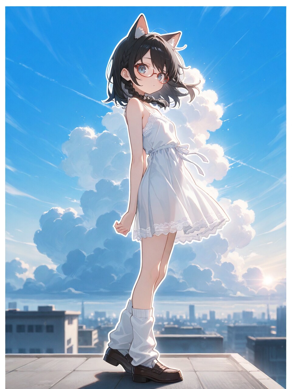 rooftop, cumulonimbus cloud, (cityscape:0.7),