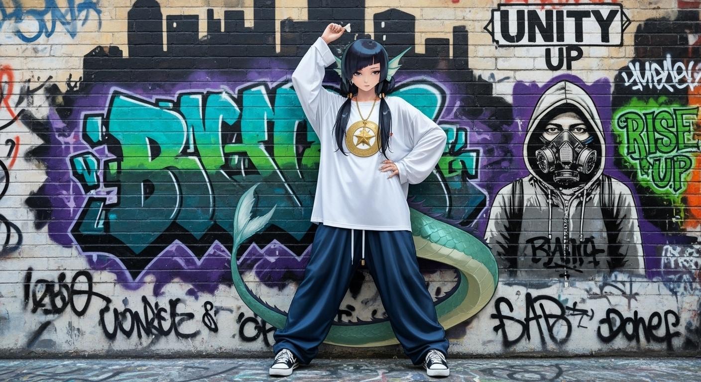 (masterpiece, best quality, ultra-detailed, 8k, hyper detailed), flat chest, reverse trap, chest sarashi, cool, oversized pants, long pants, reverse trap, midriff, baggy pants, sneakers, happi, festival, dynamic pose, (black hair: 1.3), black eyes, 1girl, sanpaku, 20yo, short hair, 160cm tall, bags under eyes, blunt bangs,