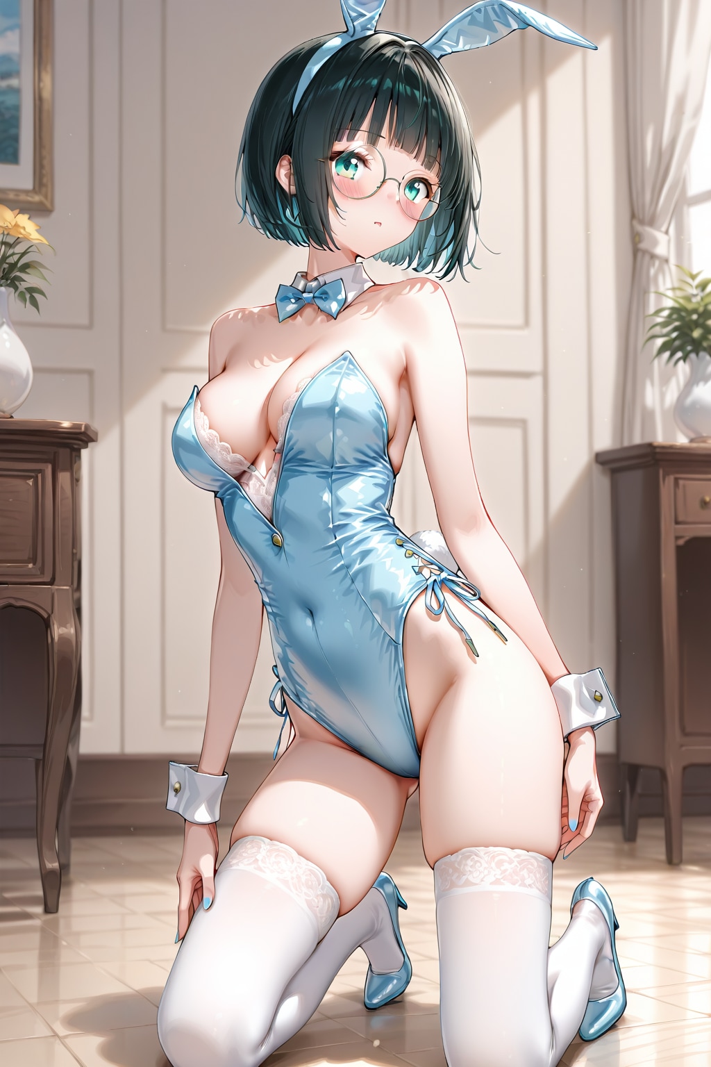 20251117【4枚】水色のバニーガールコスチュームの女性