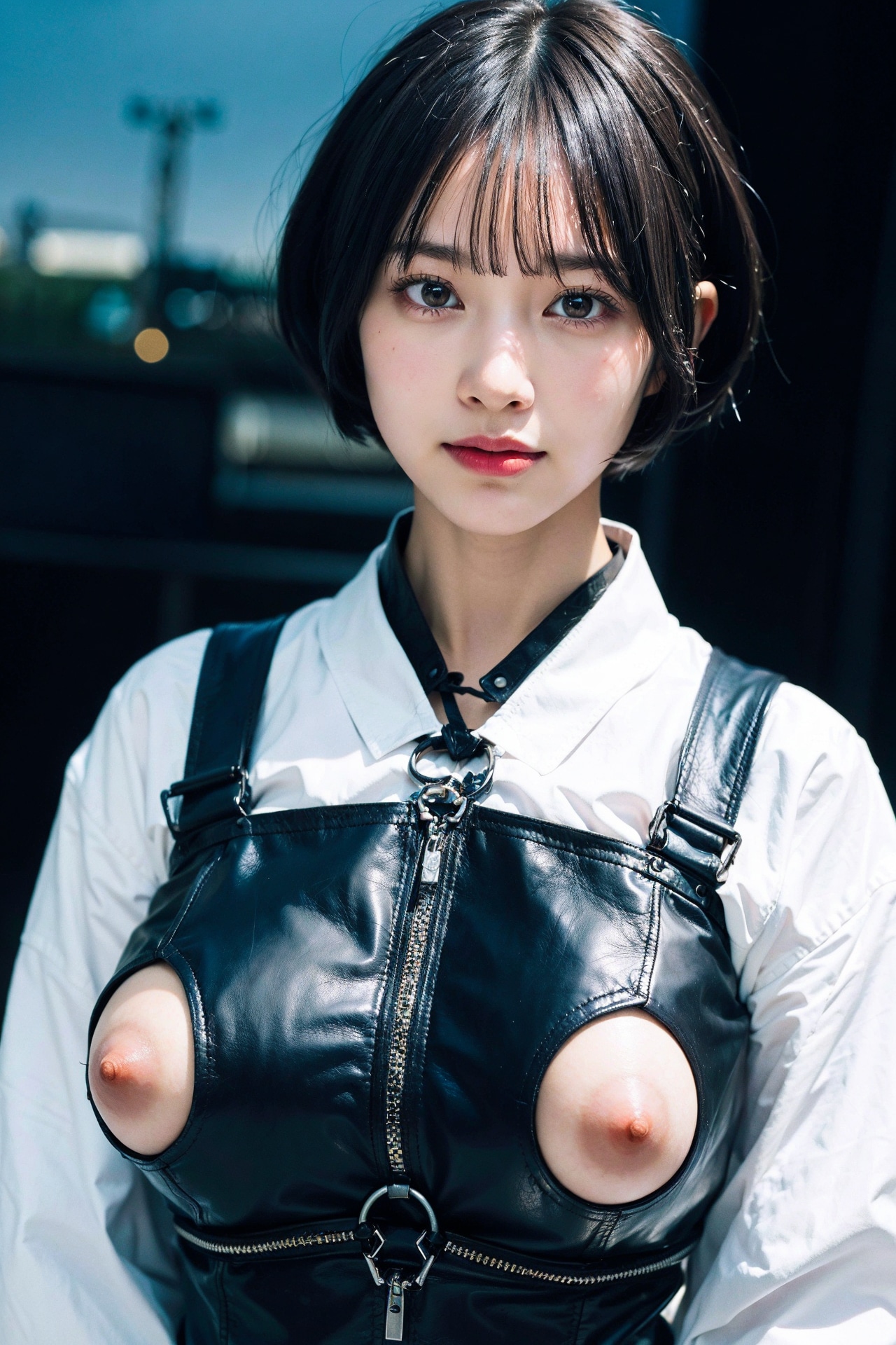 ラテックスボディースーツでポロリ 拡大版