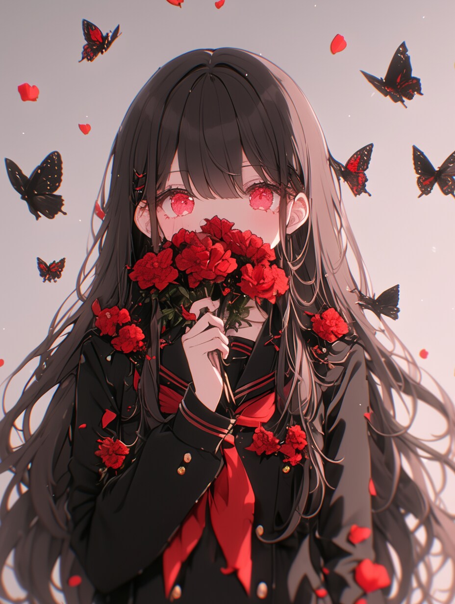 20251208【5枚】鏡の前でポーズをとるセーラー服の黒髪の女性