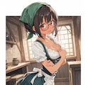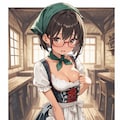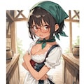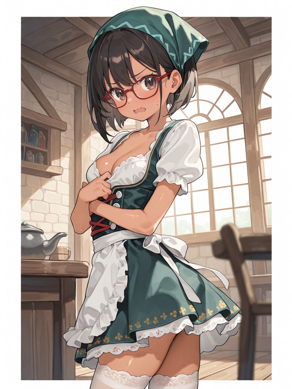 dirndl, green bandana, frilled apron, lace-trimmed miniskirt, thighhighs,