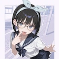 detailed face, cute face, beautiful detailed eyes, shiny eyes, grey blue eyes, black-framed eyewear,