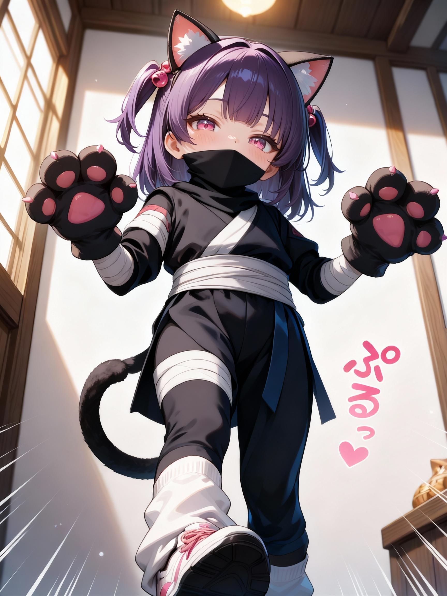普通の体操服ブルマになっちゃったやつ(1枚目)と、「違う、忍者コス着て!」と言ったら忍者になりすぎたやつ(2枚目)