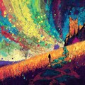 pixel art, landscape of casle combe, optical illusion, surreal, divided brushstroke, post-impressionism, fluorescent cat's paw prints pattern, light particles, ephemeral --v 7.0 --p 7tzz4db --ar 3:2