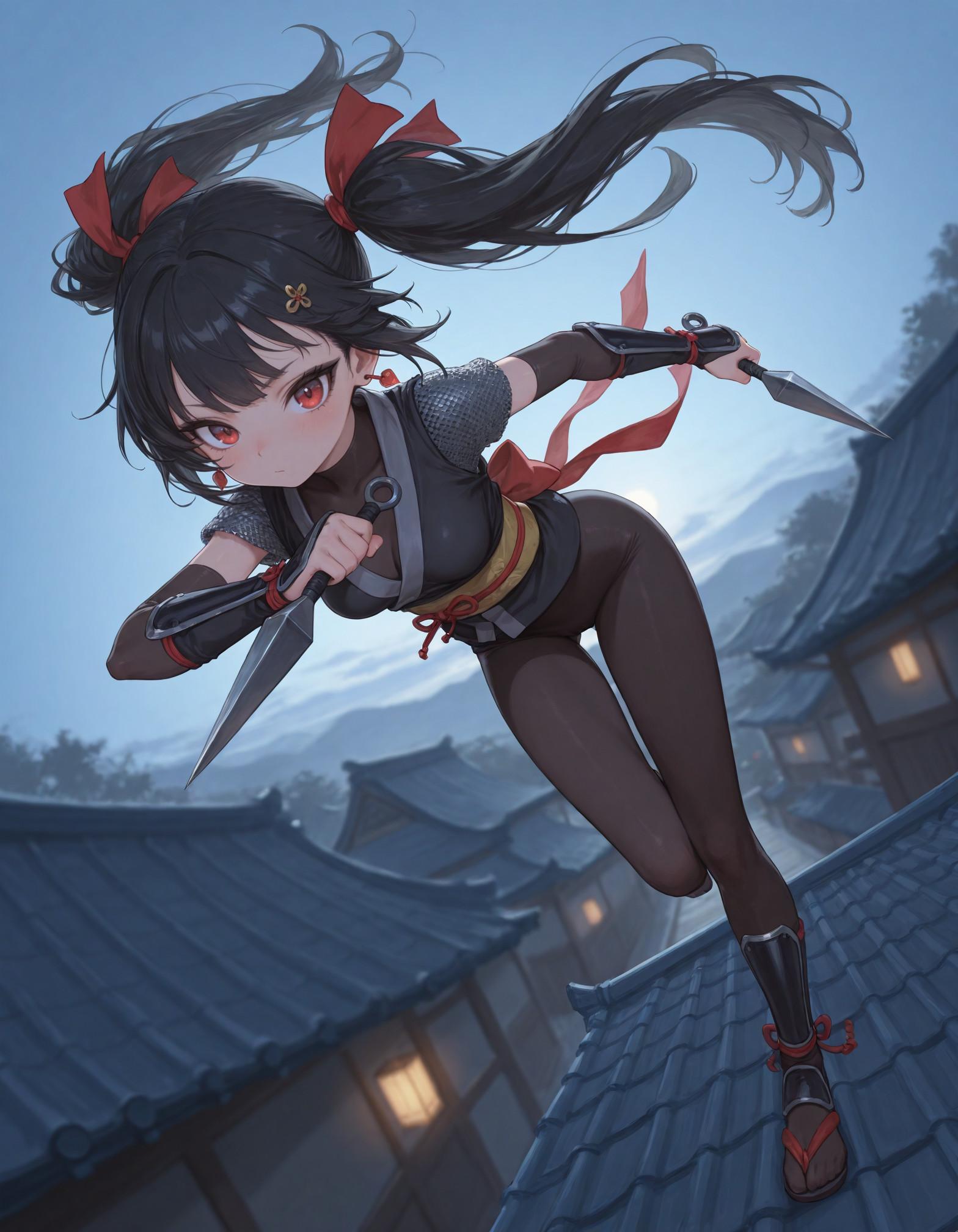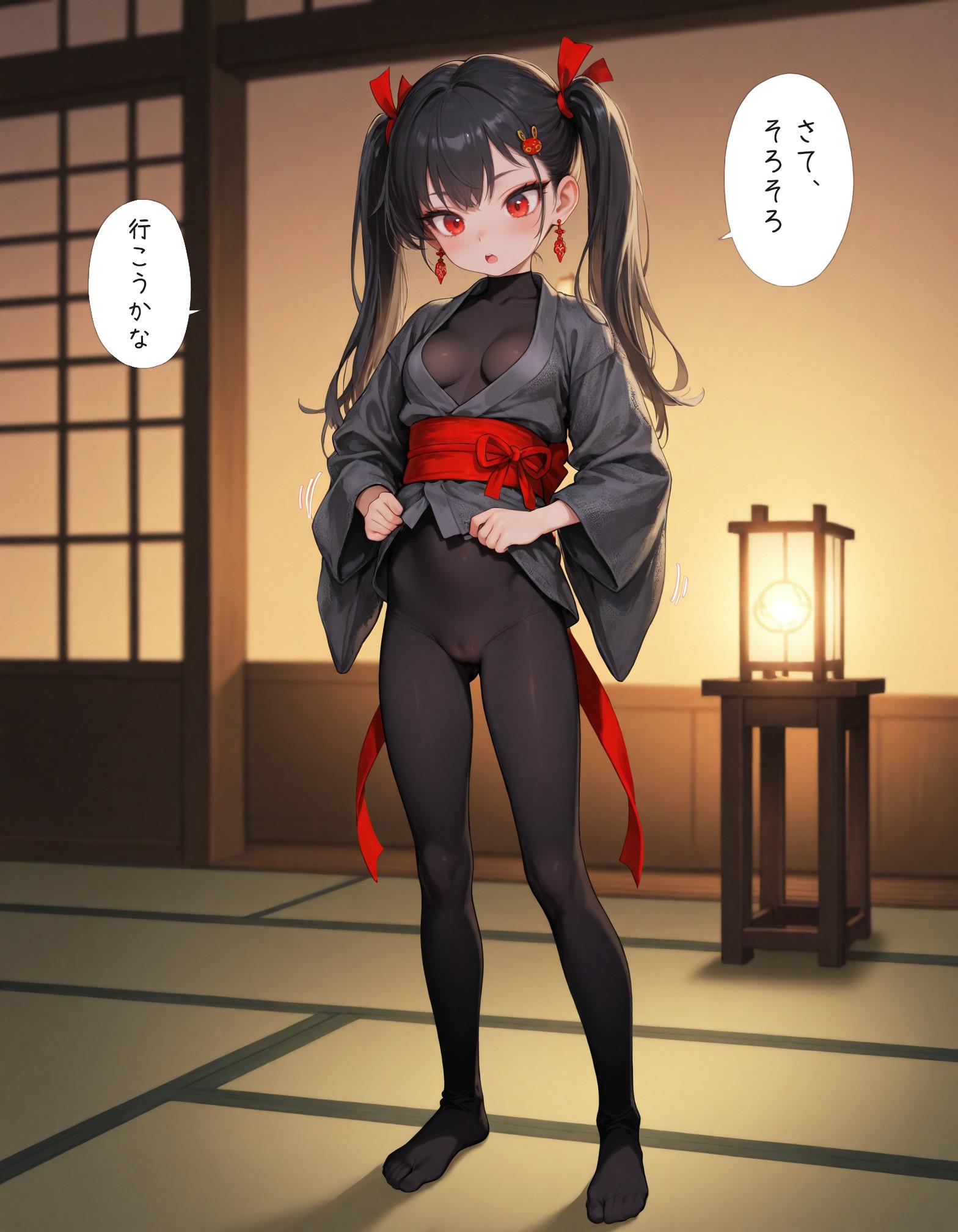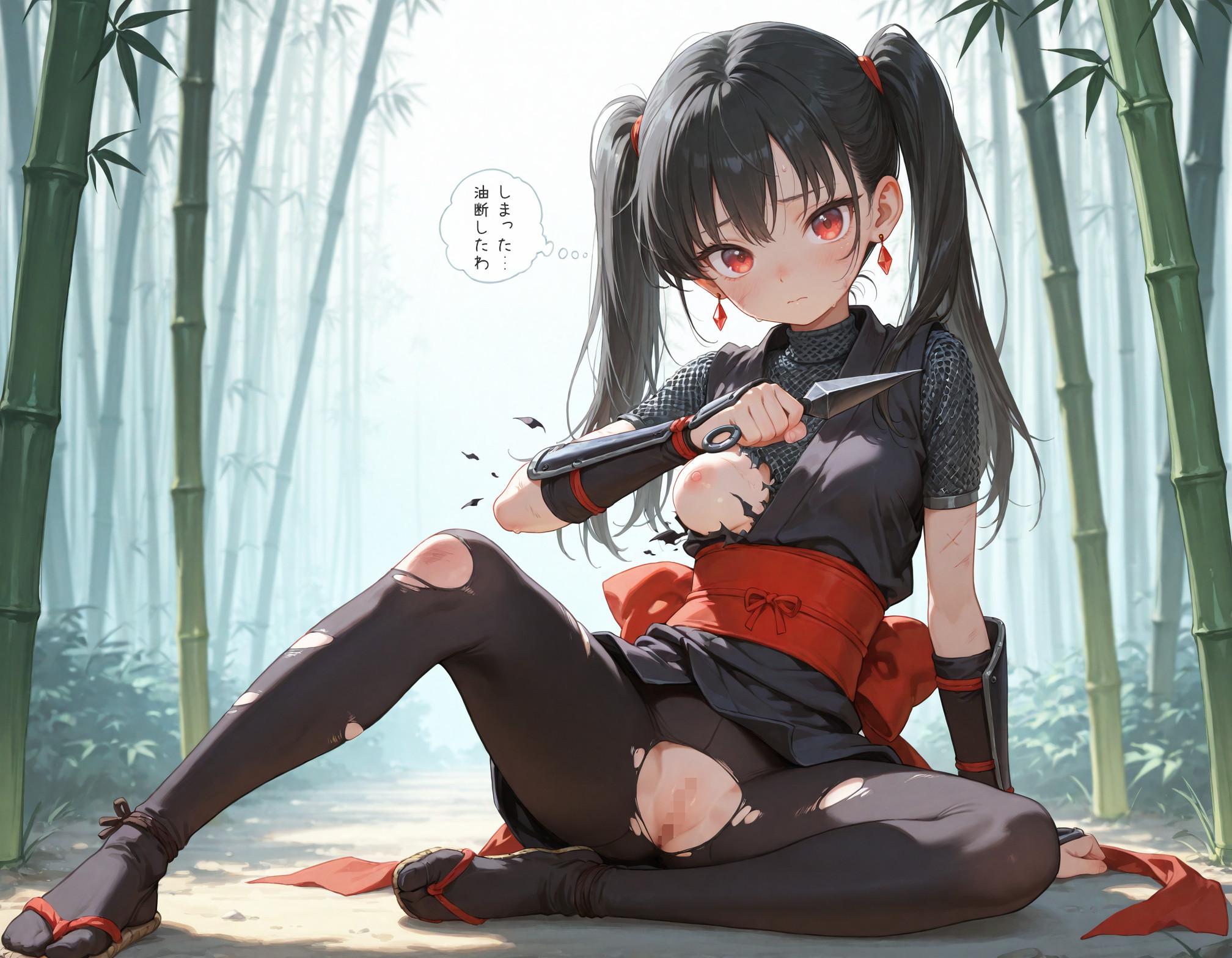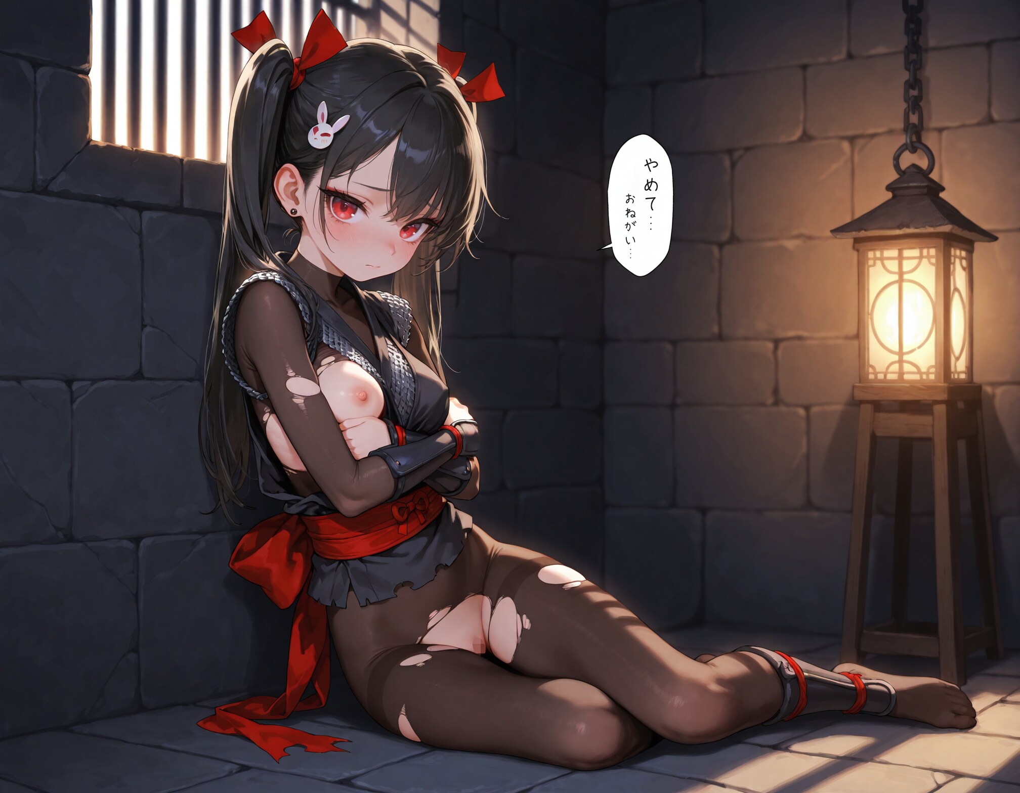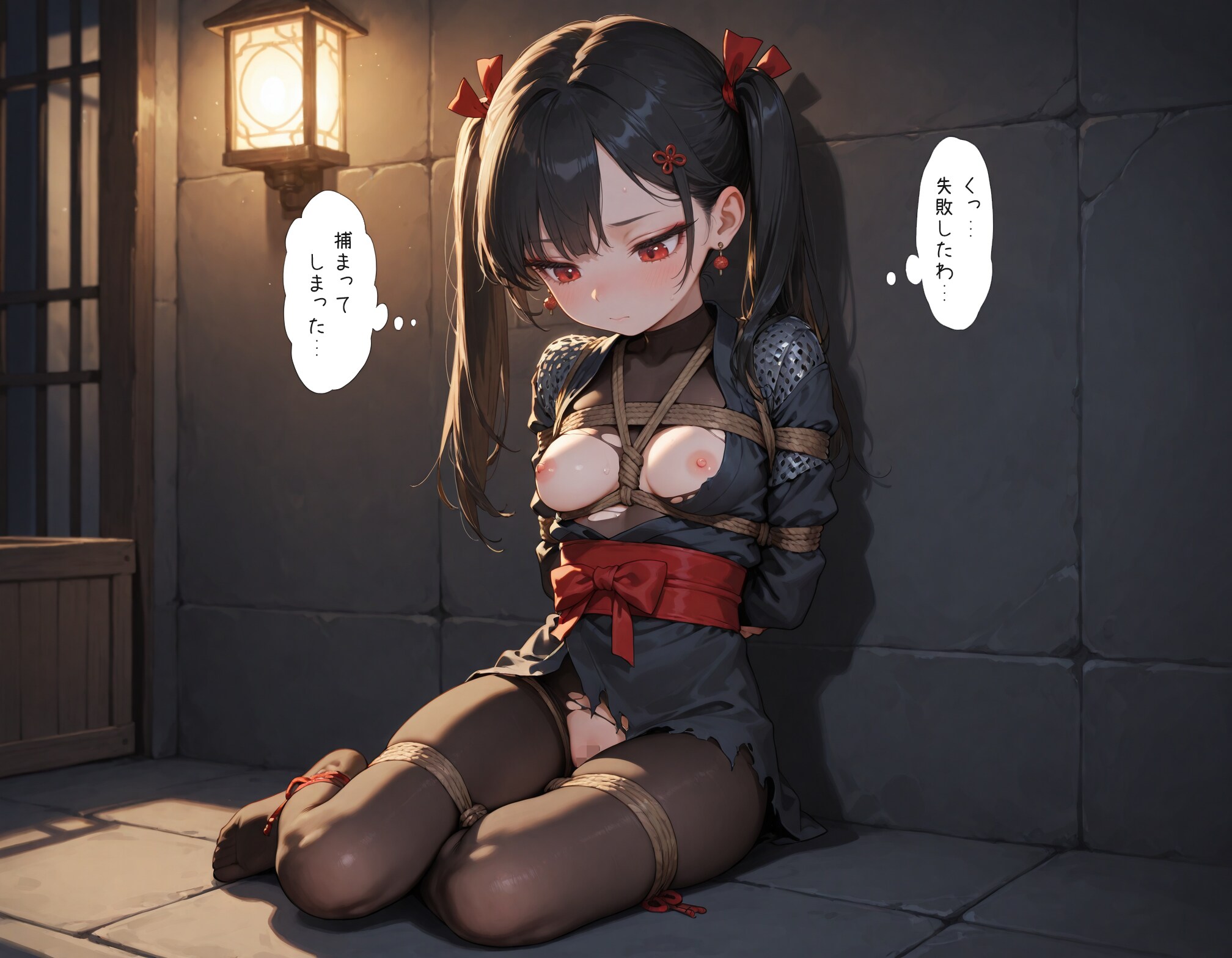 🌟【漫画】ツインテールの忍者少女ちゃん!! 【ツインテール忍者少女】の漫画1~3を再編集し、数枚追加して総集編として作ってみました。 今まで色々なシリーズで漫画ぽぃものを作ってきていたので、一度メンシでまとめてみたかったのでやってみました。 ✅『ツインテールの忍者少女ちゃん』 主人公のツインテールちゃんは特に名前はありません。 いちおう『アヤメ』とか考えてはみたのですが、イマイチしっくり来なかったので『ツインテールの忍者少女ちゃん』呼びです。 ✅『全身タイツ!』 最初は、全身タイツキャラを作りたかったところから始まりました。 全身タイツ自体は以前にも作ったことがあるのですが、コレ!というのが出来ていませんでした。 そんな中、『着物少女』を作っていた時に『着物+全身タイツ』にしようと思いました。 そうなると、やっぱり忍者(くノ一)かなと。 ポイントは、丈の短い着物にして、下着なしのタイツ直履きにしたところです。 せっかくの全身タイツなのでタイツの上にレオタードなどは無しにしようと思いました。 結果、素肌に直接全身タイツというえちちな感じになりました。 ✅『いつも通りの囚われ・・・』 シチュエーションがいつも通りの囚われから始まるのはワンパンターンですが・・・。 その代わりなるべく女の子のえちちシーンを変えるようにしています。 今回は縛りをメインにしてみました。 少し前に『金髪の少女剣士』で少し縄を使ったものを本格的にやってみました。 縛るなら和風が良いかなとやってみましたが、思いの外良かったです。 🧠『後記』 すでに36枚あるので、4枚足すだけで済むと思ったのですが、修正し始めるとあれよあれよと・・・。 吹き出しを白に統一したり、セリフを変えたりなどなどやっていたらだいぶ時間がかかってしまいました。 絵自体はほぼ未修正ですが、朝の全身タイツストレッチシーンでお股の部分がちょっとクッキリしています。 正常位からフェラするところで縄が無くなっていますが、これはフェラするのでほどいてもらったということになっています。 縄をほどくシーンを追加しようかと思ったのですが、なかなか面倒くさいシーンのわりに労力をかけてもそれほどえちち絵にならなさそうなので無しにしました。 基本的にツインテールちゃんのえちちな姿を見るイラストなので、敵を倒すシーンとかは省略です。 【ツインテール忍者少女】 ツインテール忍者少女 ※R-15 https://www.chichi-pui.com/posts/52cd277f-a394-4547-b43f-6e98cf2dd768/ 【漫画1】ツインテール忍者少女2 ※R-18 https://www.chichi-pui.com/posts/948bb094-7f55-4ae2-9b70-501bb4496cee/ ツインテール忍者少女3 ※R-18 https://www.chichi-pui.com/posts/de6db86d-b92a-4c9c-b437-0220768962c8/ 【漫画2】ツインテール忍者少女4 ※R-18 https://www.chichi-pui.com/posts/2d4f451b-7d88-445a-86cd-eb978f58ebd7/ 【漫画3】ツインテール忍者少女5 ※R-18 https://www.chichi-pui.com/posts/4dbffb21-c623-477c-9229-bf64afb216f4/ # Model: shiitakeMix v2.0 by Vsukiyaki