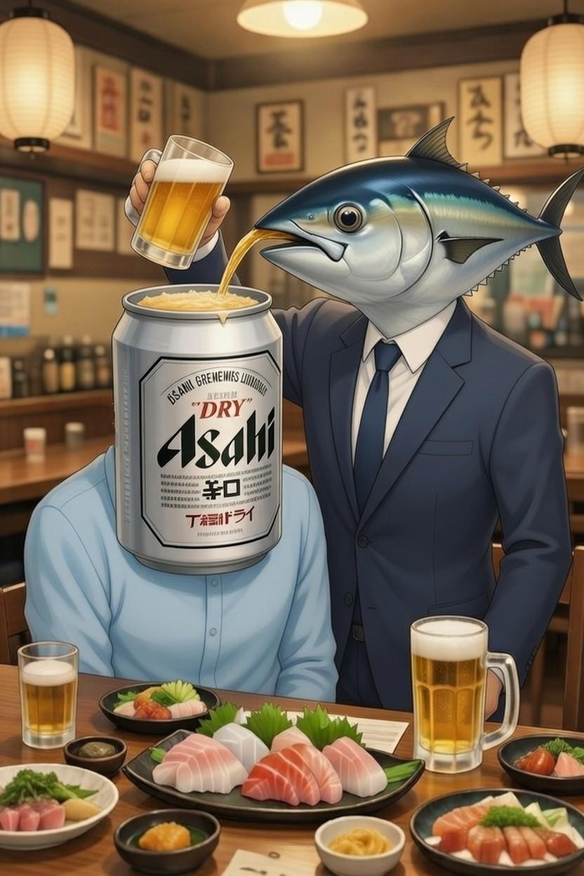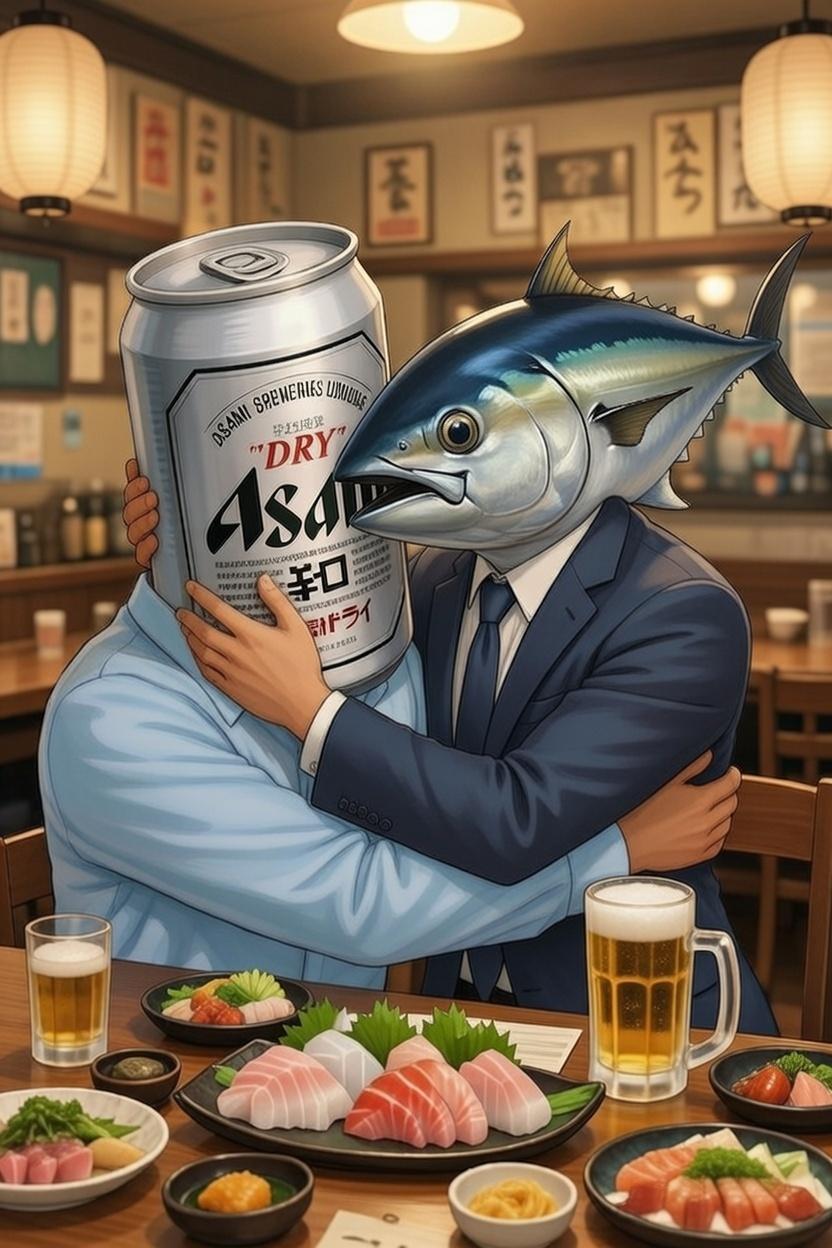 🍺「大好き〜♡」 🐟️「ありがと〜♪」 アグロ🐟️さんが作成されたフィルターOFFの画像をもとに https://www.chichi-pui.com/posts/3d652e26-fcc2-489c-aa88-e1cb8523f460 居酒屋で飲んでいることにして、よくある風景にしてみました 動画(*閲覧注意) https://grok.com/imagine/post/dacc9e13-61c8-4ccf-9642-bbf2d0542308?source=post-page&platform=web