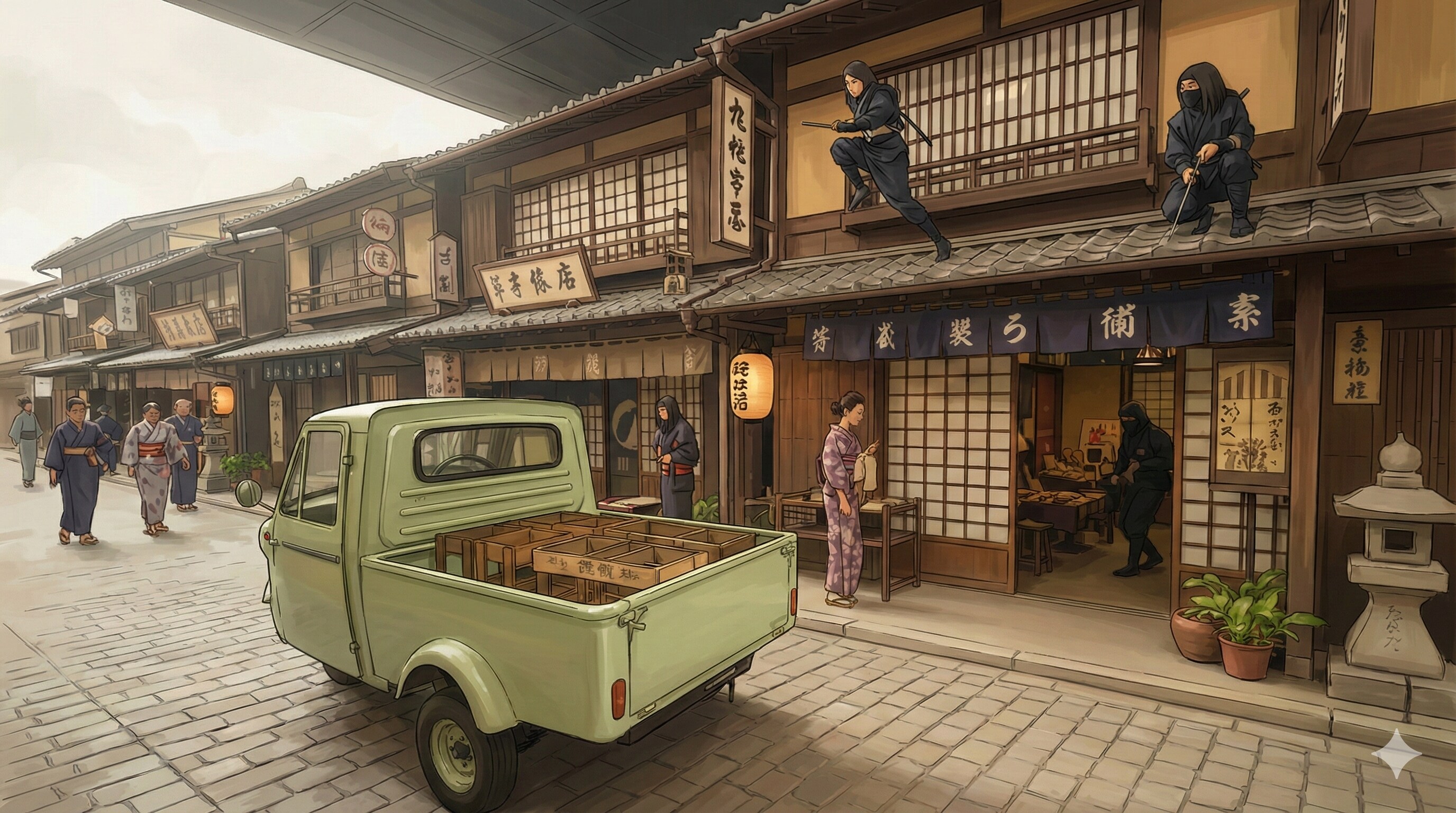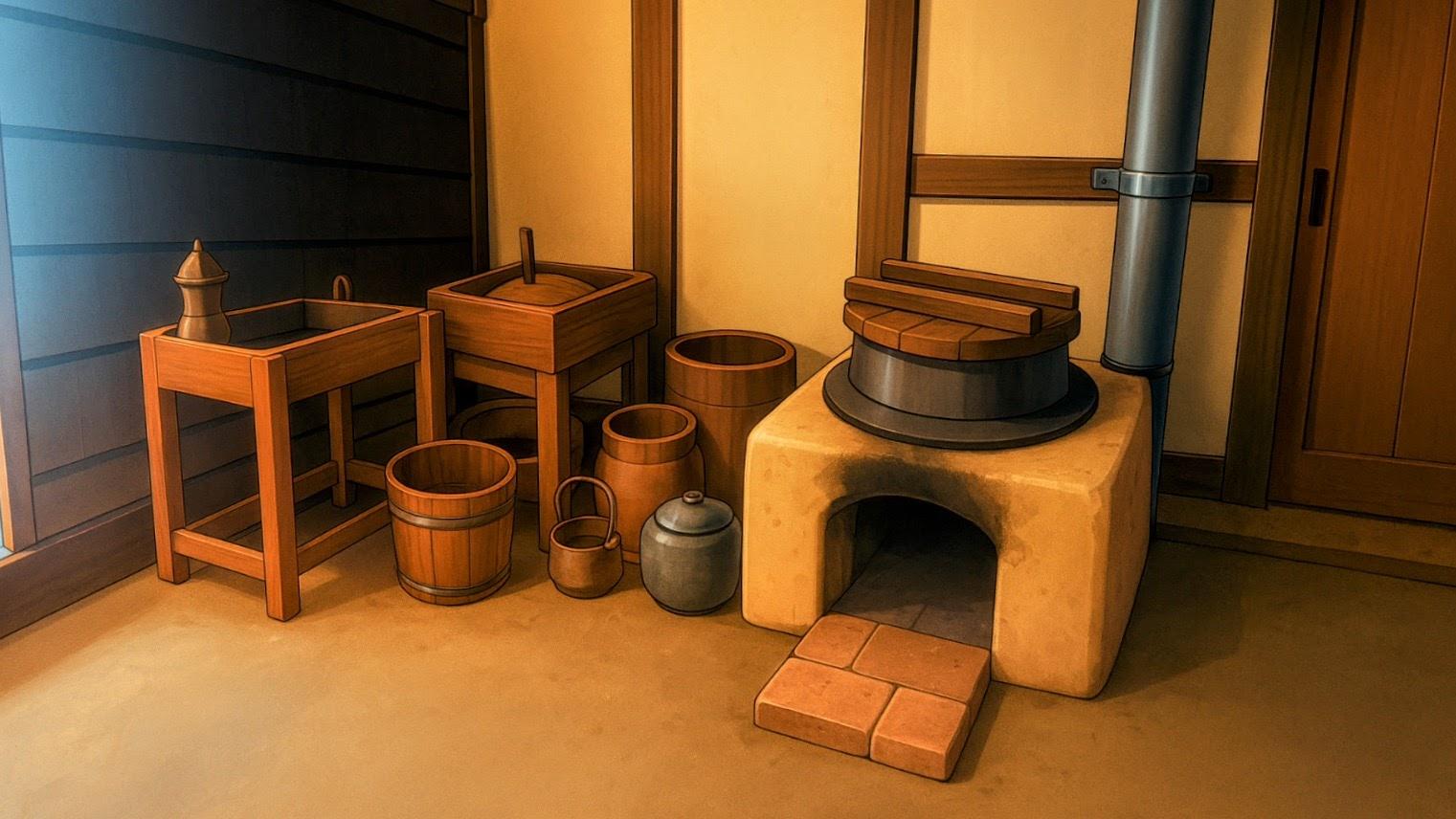 『小町のオンステージ!』の主人公 秋田小町とその家族が暮らしている豪邸。 内部には喫茶店も併設しており、小町の祖母と母が切り盛りしている。 元の写真は所沢航空記念公園内の彩翔亭。