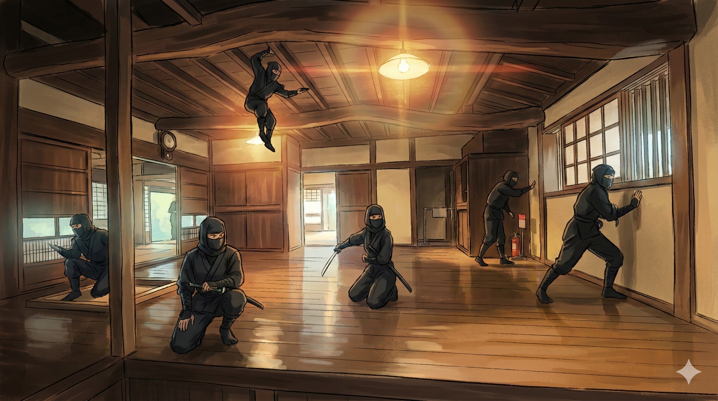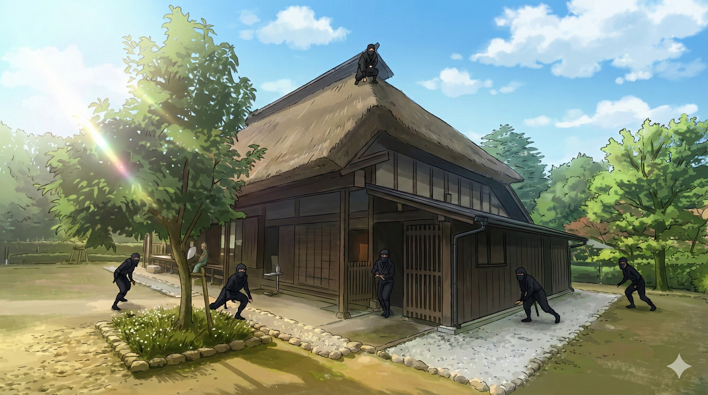 1,修行道場(所沢温泉 湯楽の里) 2,くノ一 3,食事処(道の駅 琴の浦) 4,暁城(お菓子の壽城)