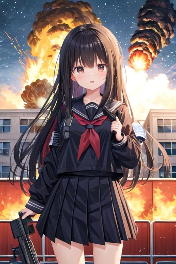 20251114【5枚】紺色のセーラー服とマスクの女性