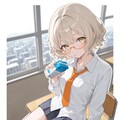 (semi-rimless eyewear:1.2), (drinking straw:1.2), head tilt, looking up,